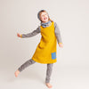 Ärmelloses Bio-Mädchenkleid mit Tasche "Ripp Senf/Dotties Blau" aus 100% Bio-Baumwolle